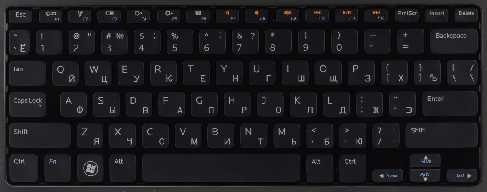Клавиши нажимаются мягко и практически бесшумно, ход короткий, так что после настольной клавиатуры некоторый период привыкания необходим. Очень понравилось расположение курсорных клавиш. Хотя они и уменьшены в размере и занимают один ряд, но зато совершенно не мешаются при печати текста, их практически нереально случайно нажать. А вот клавиши в верхнем ряду функциональных кнопок могли быть и немного пошире. Сверху ведь ничего не мешает, а эти клавиши у ноутбуков все же более востребованы, чем на настольных клавиатурах.