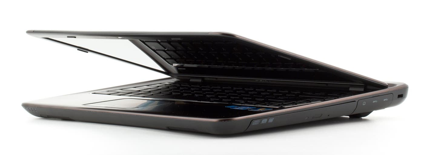 На фоне очень скудного описания технических параметров ярко выделяется толщина корпуса, указанная аж до сотых миллиметра. Перепроверить результаты с достаточным уровнем точности нам не удалось. Зато вес указан довольно расплывчато: от 1,92 кг. Наш ноутбук с 6-элементной батареей весил 2,02 кг. Блок питания с кабелем — еще 450 граммов. На сегодняшний день для 13-дюймовых ультрабуков нормальным считается вес в 1,3 кг (хотя он сильно зависит от емкости батареи), а тонкие и легкие 14-дюймовые ноутбуки вплотную подбираются к 1,7 кг. На этом фоне Dell Inspiron 14z выглядит немного тяжеловесно.