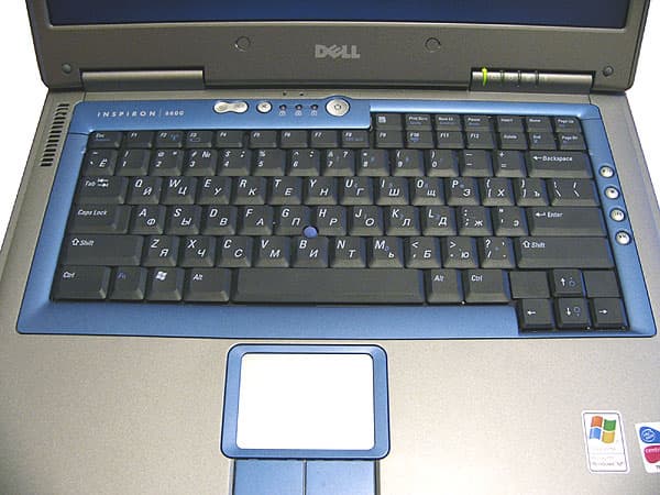 Места хватило и для входной вентиляционной решетки (располагается слева от клавиатуры), в которую поступает воздух для охлаждения процессора. От настольных мобильных ПК Inspiron 8600c отличает лишь отсутствие цифрового блока. Клавиатура достаточно стандартна, т.е. у нее хорошая отдача и чувствительность.