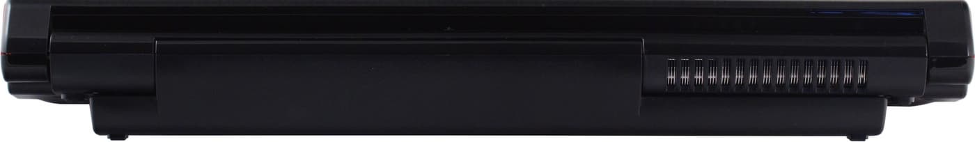 Нижняя крышка из простенькой черной шершавой пластмассы. Впрочем, в настольной модели это вполне оправданное решение, вряд ли кто-то увидит ее дно. Также стоит отметить, что батарея сильно выдается из корпуса вниз, больше чем на сантиметр. Из-за этого, во-первых, между ноутбуком и поверхностью, на которой он стоит, образуется большой зазор, в котором циркулирует воздух, а во-вторых, создается пространство, в котором работает «сабвуфер ноутбука».