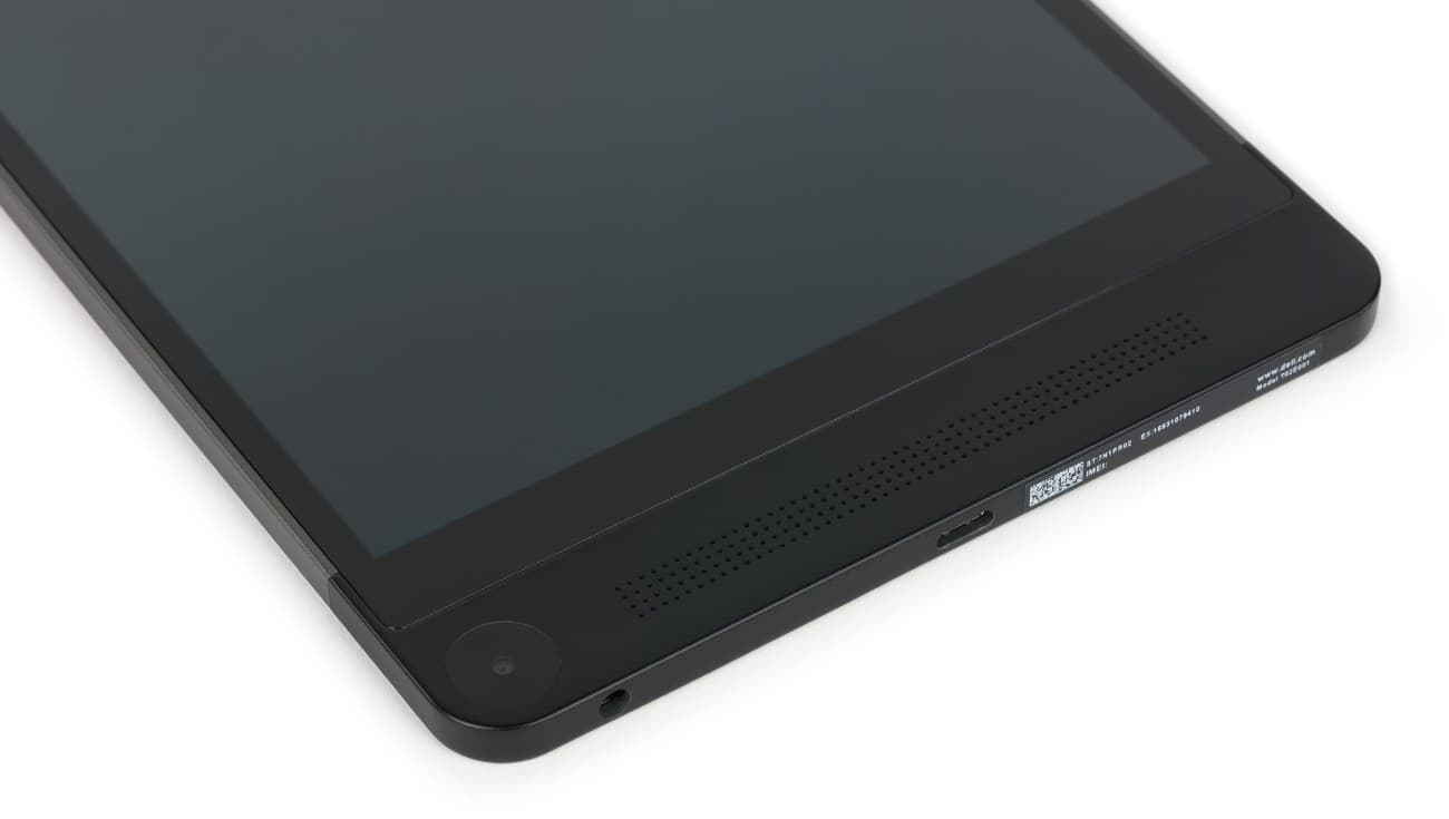 Поля у Venue 8 узкие, что позволяет легко обхватить устройство одной рукой. Этому способствует и соотношение сторон 16:10. Главной особенностью фронтальной панели является то, что камера переставлена под дисплей.