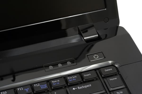 Основных рабочих индикаторов четыре: крайний левый отвечает за питание, далее индикатор обращения к жесткому диску, индикатор состояния батареи и индикатор работы беспроводных интерфейсов. Они расположены на передней грани клавиатурной панели и смотрят вперед и вверх. Индикаторы выполнены в виде ярких голубых светодиодов. С яркостью конструкторы переборщили и сильно: диоды выглядят яркими даже при дневном свете, ночью же откровенно режут глаза. Смотреть фильмы в темноте практически невозможно, приходится их чем-то прикрывать.