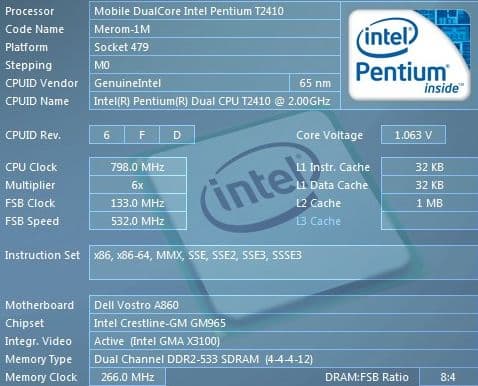 | Процессор | Intel Celeron 560 (2,13 ГГц, кэш второго уровня 1 МБ, внешняя шина 533 МГц) | Mobile DualCore Intel Pentium T2410, 2000 МГц (15 x 133) |