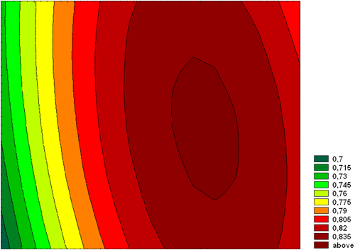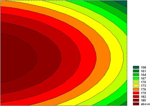 Поверхность, построенная по значениям контрастности. Изолинии через 3 единицы