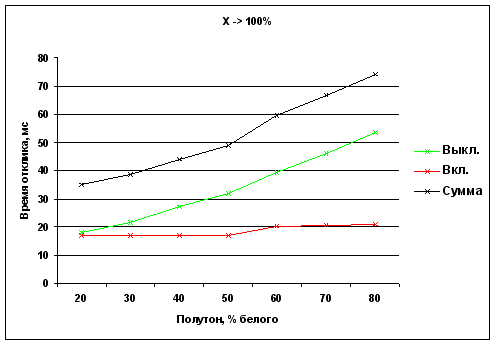 Времена отклика при переходе от полутона X до белого
