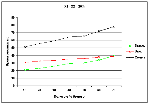 Времена отклика при переходе между полутонами в окрестности X, отстоящими от X на 10%