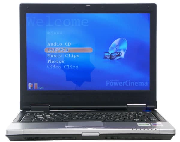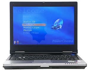 Открываем крышку. Сразу бросаются в глаза две одинаковых кнопки над клавиатурой. Одна включение ноутбука, а вот за что отвечает вторая, помеченная загадочной буквой «P»? Обращаемся к руководству пользователя. Оказывается, ноутбук комплектуется оболочкой CyberLink Power Cinema, построенной на базе ОС Linux. Оболочка занимает раздел объемом 502 МВ на жестком диске и позволяет без загрузки основной ОС использовать ноутбук в качестве мультимедийного центра.
