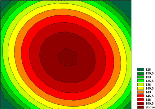 Поверхность, построенная по значениям яркости белого поля. Изолинии через 2,5 кд/м2