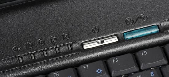 Дополнительная клавиша на ноутбуке всего одна, она включает беспроводной интерфейс. Клавиша заставила вспомнить советские пластмассовые конструкторы, настолько ужасно она выглядит. При включении она подсвечивается единственным зеленым светодиодом, при этом литье становится еще более заметным.