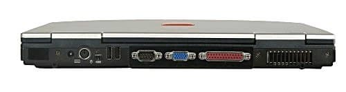 На задней панели тоже достаточно много чего. Слева направо: ИК-порт, разъем для штекера питания, порт PS/2 для подключения клавиатуры или мыши, порт IEEE1394, два вертикально расположенных порта USB 2.0 (порты расположены близко, что может помешать установить в них два устройства с большими габаритами. Проблем с отсутствием места вверху или внизу не возникает), COM-порт, выход на внешний монитор, параллельный порт. Правый угол занят решеткой системы вентиляции (т.е. теплый воздух выдувается назад).