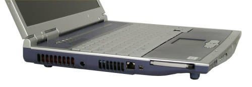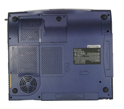 Левый бок (тактой ракурс я использовал для того, чтобы лучше было видно конфигурацию выступа передней стенки) по большей части занят решетками системы вентиляции, между которыми находится разъем питания. Справа от решеток сетевой порт и порт IEEE 1394, дальше идет один разъем PCMCIA. Единственную претензию можно предъявить к сетевому разъему (по столу будет виться кабель), в остальном все реализовано хорошо. Наконец, дно.