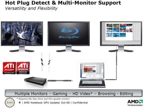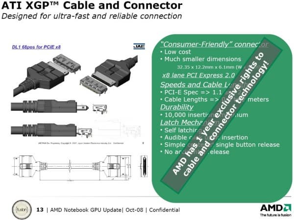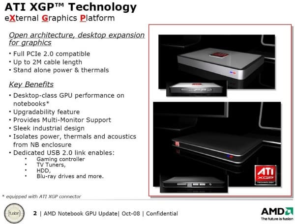 11 декабря 2008 года компании AMD и Fujitsu-Siemens Computers провели презентацию нового уникального продукта: внешней видеокарты для ноутбуков.