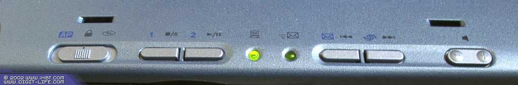 Как уже говорилось выше, кнопки быстрого запуска приложений совмещены с кнопками управления проигрывателем CD/DVD. Переключение режимов осуществляется трехпозиционным ползунком. В левом положении "АР" кнопки используются для быстрого запуска приложений, в центральном кнопки заблокированы, работает только регулировка громкости, в правом работает проигрыватель. Вызываемые программы можно назначить с использованием Quick Touch application button utility.