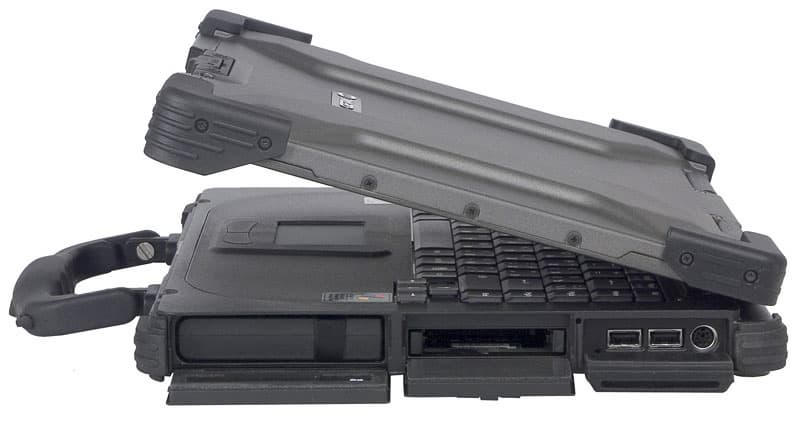 Выглядит ноутбук очень эффектно. В каком-нибудь полуфантастическом шпионском боевике типа Mission Impossible N+1 он выглядел бы вполне органично. Корпус производит ощущение надежности и солидности. Все разъемы закрыты резиновыми заглушками, сменные устройства — крышками с уплотнением.