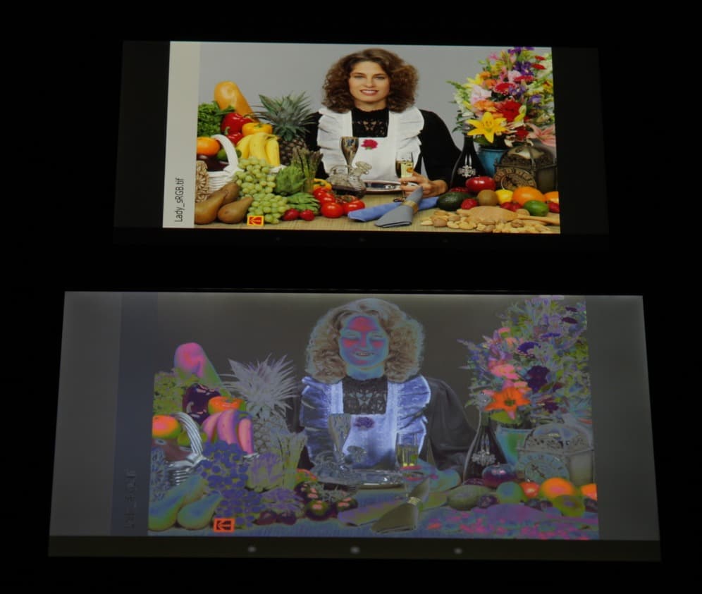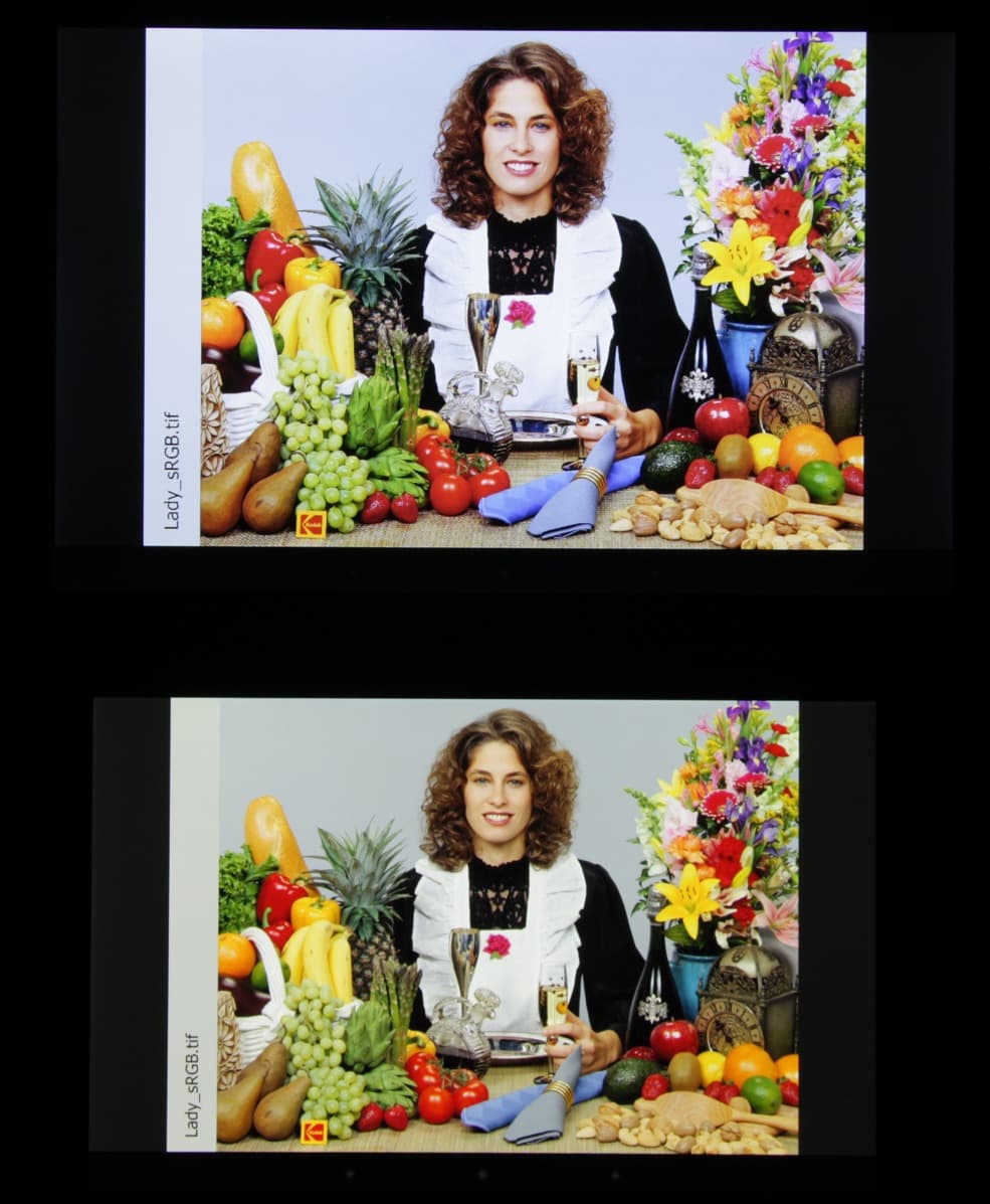 Данный прием позволяет увеличить яркость экрана при тех же затратах энергии на подсветку. В итоге цвета изображений — рисунков, фотографий и фильмов, — ориентированных на пространство sRGB (а таких подавляющее большинство), имеют уменьшенную насыщенность. Баланса оттенков на шкале серого как такового нет вообще — цветовая температура выше стандартных 6500 К и сильно меняется от оттенка к оттенку: