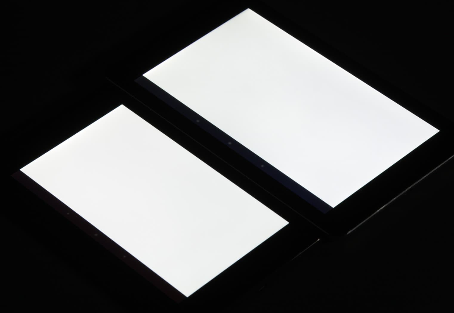 Отметим хорошую равномерность яркости и цветового тона у обоих экранов. Теперь под углом примерно 45 градусов к плоскости экрана и к его сторонам:
