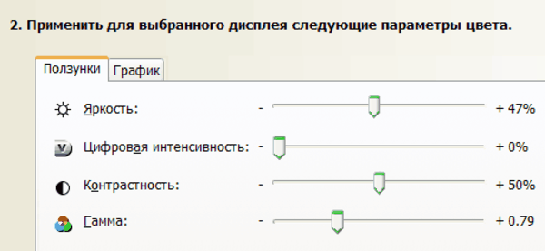 Снижение яркости до 45-47% позволяет различать самые яркие оттенки, а настройка гаммы/контрастности вытянуть темные. Возможно, для искусственной сочности стоит добавить «цветовую интенсивность», но не более 15-20%. В любом случае, при разных условиях освещенности будет разный результат. Для того, чтобы цвета стали более теплыми, рекомендуем снизить гамму по «синему» каналу до 60%, по красному и зеленому вернуть до 90%. Однако оптимальных настроек не существует.