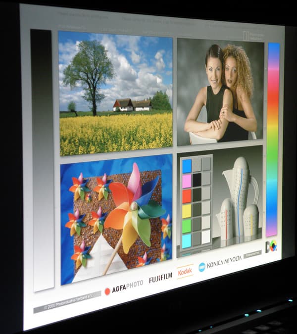 Самая интересная часть исследования. В зависимости от конфигурации, для этой модели доступно две матрицы формата 16:10 с матовым покрытием - 15,4" WSXGA+ (1680 x 1050) или 15,4" WUXGA+ (1920 x 1200). В рассматриваемой конфигурации установлен последний вариант, что является как достоинством, так и недостатком. С одной стороны, на таком экране можно разместить много информации (это нужно при работе с большим количеством окон приложений), кроме того, на таком экране можно воспроизводить контент Full HD в оригинальном расширении. Недостатком является то, что из-за очень большого разрешения на небольшой по размерам матрице мелкие шрифты и картинки становятся плохо читаемыми, приходится напрягаться, что приводит к быстрой утомляемости глаз.