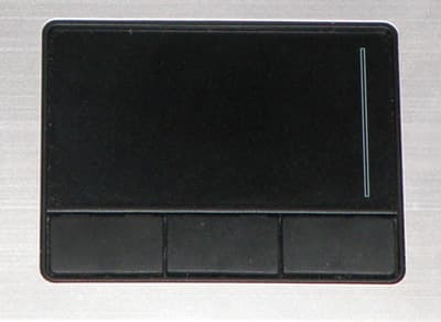 Тачпад Synaptics стандартный, чуть утопленный в корпус, без функции мультитач, cправа визуально выделена зона вертикальной прокрутки. Для меня шероховатые поверхности приятней в работе, чем «глянцевые» в более дешевых HP Pavilion, или «невидимые» одноуровневые как в моделях Toshiba, возможно, это дело привычки.