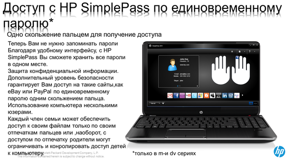 Это еще одная технология, перекочевавшая в домашние ноутбуки из корпоративных серий. Фактически это менеджер паролей, который привязывается не к мастер-паролю, а к сканеру отпечатков пальцев. Решение очень простое и удобное, ибо настроив его один раз, в дальнейшем аутентификацию можно выполнять, проведя пальцем по сканеру. На мой взгляд, очень полезное и удобное решение. Его основное достоинство даже не в том, что повышается уровень защиты ноутбука и данных, а в том, что сканером очень просто пользоваться, поэтому большинство пользователей охотнее будет ставить пароли (причем пароли более сложные) и активнее ими пользоваться.