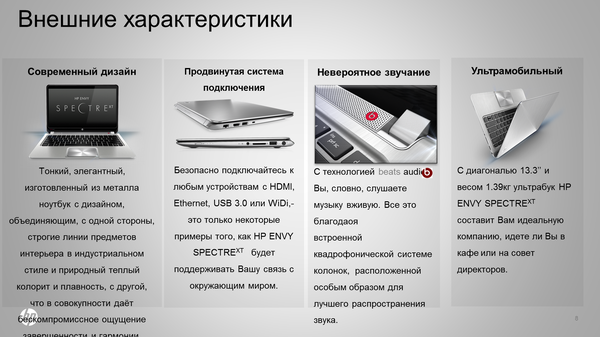 Ну а мы переходим к тем ноутбукам и ультрабукам, которые были показаны во время презентации, и для начала поговорим о флагманских и более дорогих ультрабуках из линейки Envy Spectre.