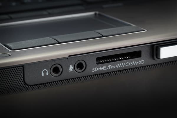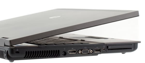 Дальше идет DisplayPort (производители считают, что в корпоративные модели надо ставить именно этот тип цифрового видеовыхода, а не HDMI), аналоговый выход VGA и порт USB. Здесь же находится IEEE1394a (маленький разъем). Наконец, совсем близко к передней панели находится слот ExpressCard 54, а ниже него — разъем для смарт-карты.