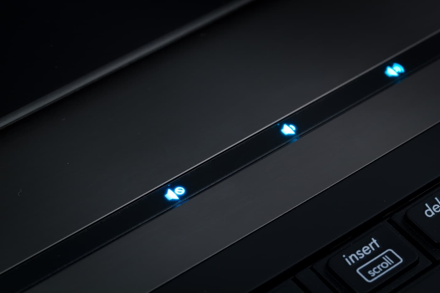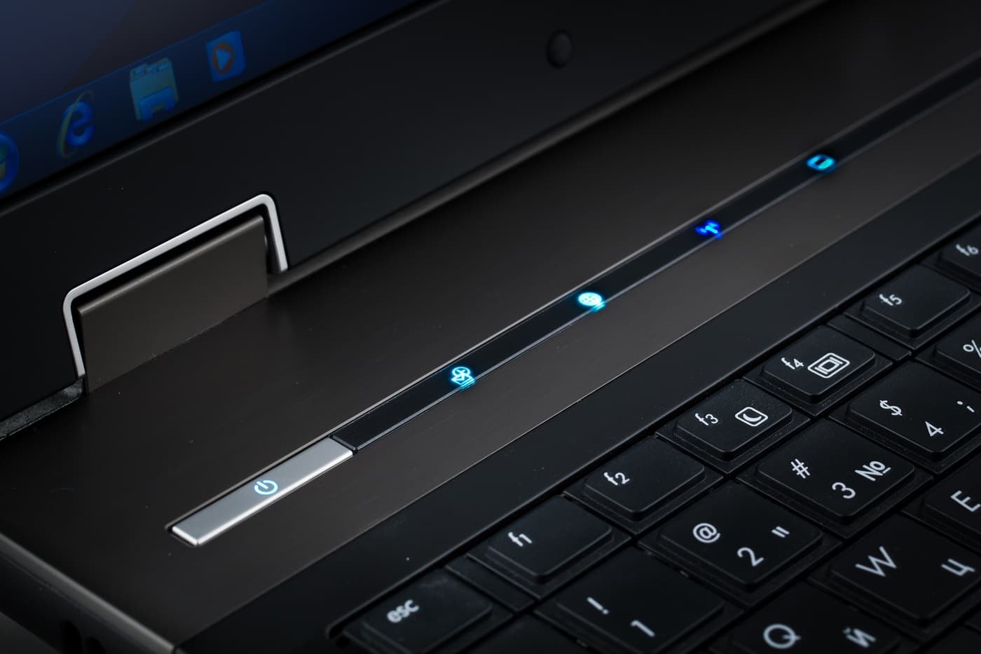 Дополнительные клавиши, как и в модели 8440р, расположены над клавиатурой, в черной пластмассовой вставке. Сенсорные клавиши выполнены в виде иконок, подсвечивающихся ярко-голубым.