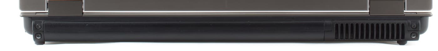 На задней панели, к моему удивлению, не оказалось никаких разъемов. Сюда выходит выхлопная решетка вентиляции, остальная поверхность отдана батарее.