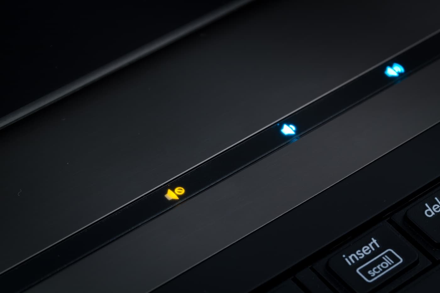 Основные системные индикаторы в Elitebook 8740w расположены на передней грани ноутбука и смотрят вперед. При работе индикаторы видно (хотя и приходится смотреть на них под острым углом).