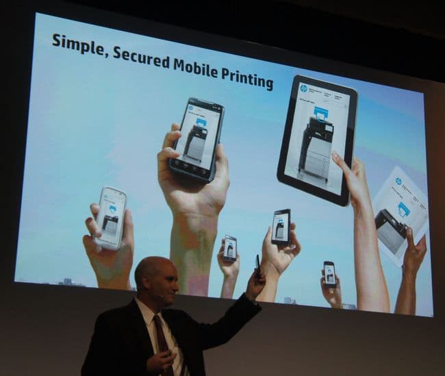 С одной стороны, мобильные решения для сетевой печати уже есть. Но там есть сложности — необходимо устанавливать приложения, настраивать сетевой доступ, доступ к притнеру и т. д. Сейчас же НР представляет новое устройство, которое позволяет осуществлять печать с мобильного устройства через NFC.