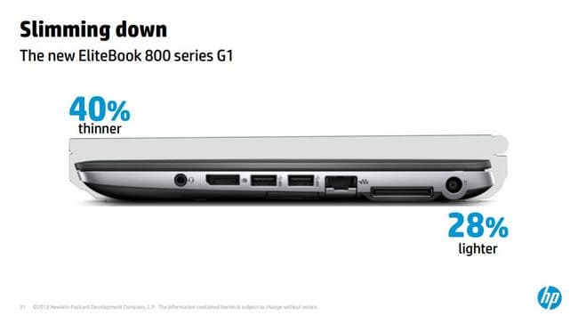Основное достоинство новых Elitebook 800 — резкое снижение толщины корпуса и веса, делающее ноутбук более портативным.