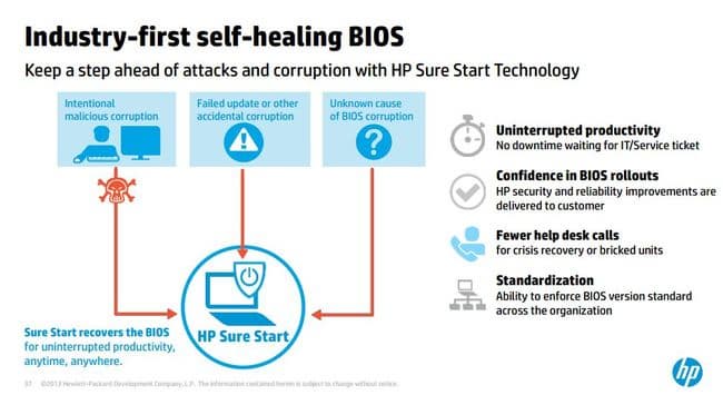 Наконец, в комплекте идет ПО, ответственное за обеспечение безопасности. Это могут быть аппаратные технологии — например, SureStart, которая автоматически восстанавливает BIOS при некорректном Bootblock из страховочной копии, т. е. сотрудник не останется со сдохшим ноутбуком. В некоторых ноутбуках НР работает и технология Anti-Theft от Intel.