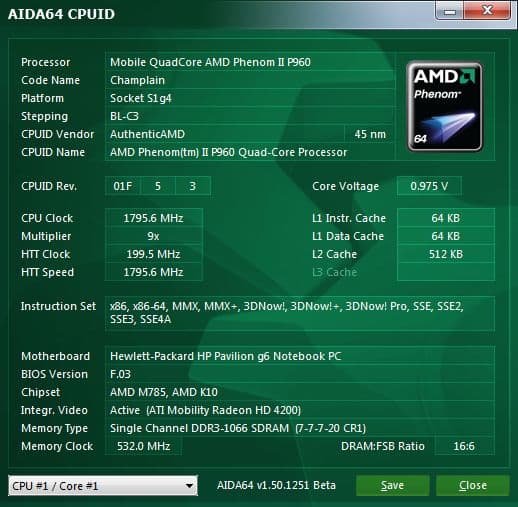 Процессор Phenom II P960 любопытен тем, что это один из самых экономичных четырехъядерников из существующих на рынке. Но, увы, это не дается просто так, его частота более чем скромная: 1,8 ГГц. Соответственно в приложениях, где задействуется только одно или два ядра, заведомо можно ожидать невыразительных результатов. Еще одна сомнительная особенность комплектации: наличие всего одного модуля памяти (хотя и емкого), соответственно, память работает в одноканальном режиме.
