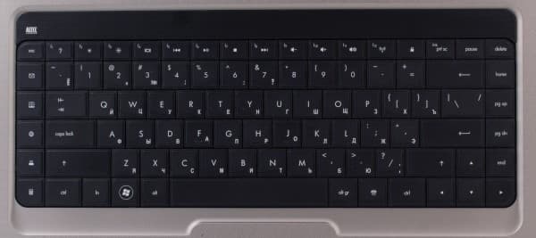 Кроме упомянутого светодиода, индицирующего состояние тачпада, на корпусе имеется индикатор питания, также индикаторами снабжен Caps Lock и клавиша переключения режимов беспроводной сети. Дополнительные клавиши, как уже отмечалось, составляют левый вертикальный ряд основной клавиатуры. И, конечно же, клавиши в верхнем ряду отвечают за традиционные функции регулировки яркости экрана, уровня громкости, переключение на внешний монитор и управления плеером. Причем, как мы уже наблюдали на ноутбуках HP, эти функции вызываются без нажатия префиксной клавиши, а нажимать ее необходимо, если вы хотите вызвать функции, закрепленные за клавишами F1-F12 в самих программах.