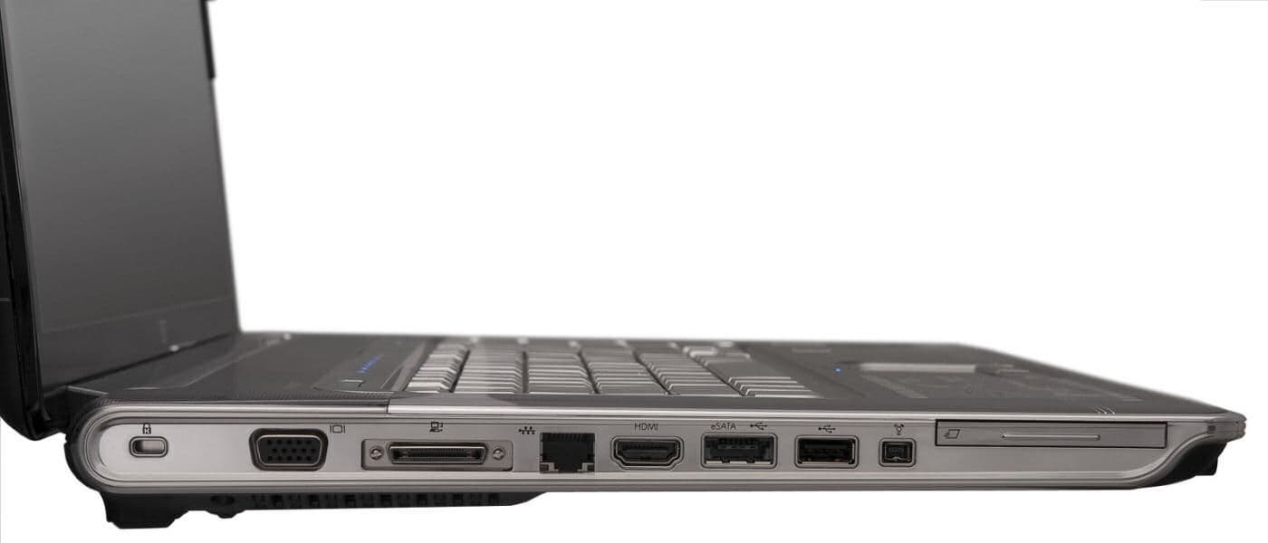 На левой грани корпуса находится разъем замка Кенсингтона, традиционный аналоговый выход VGA на внешний монитор. Дальше идет разъем для внешней док-станции — HP, пожалуй, является единственным производителем, который делает его для домашних ноутбуков. Конечно, HDX18 — не портативная модель, тем не менее, даже для него наличие такого порта может оказаться крайне удобным. Например, к док-станции можно подключить всю бытовую технику в гостиной. Тогда ноутбук можно носить по квартире, на кухню или в другую комнату, а вернувшись, очень быстро подключить все обратно. Единственное, хотелось бы, чтобы разъемы док-станции и питания были на одному боку, чтобы провода тянулись с одного бока ноутбука.