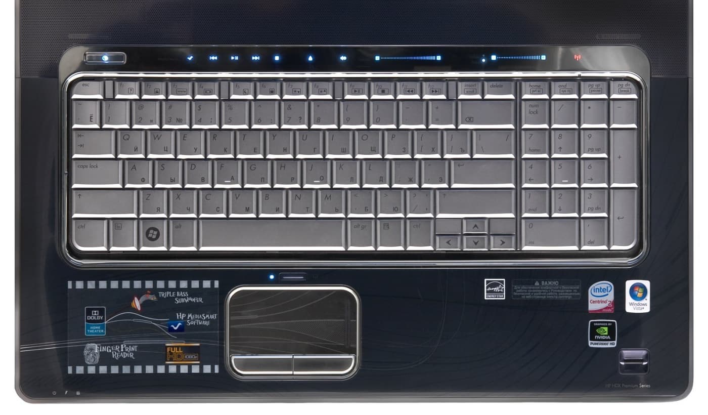 Кстати, тачпад в HDX 18 можно легко отключить кнопкой, которая находится над ним — это традиционная особенность всех ноутбуков HP. Тачпад лучше отключать, когда к компьтеру подключена мышка, чтобы избежать скачков курсора при печати. Тем более, что включить его обратно — дело секунды. Рядом с кнопкой есть диод, который показывает, включен тачпад или нет (светится синим или оранжевым светом), диод яркий и иногда отвлекает.
