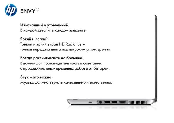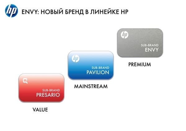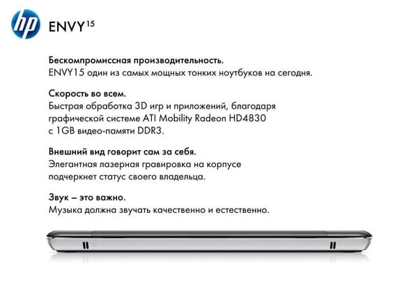 Основное в нем – это позиционирование. Envy – бренд преимум сегмента, который должен занять наивысшую строчку среди всех линеек домашних ноутбуков, выпускаемых компанией. Да-да, эти ноутбуки отнесены к домашним сериям.