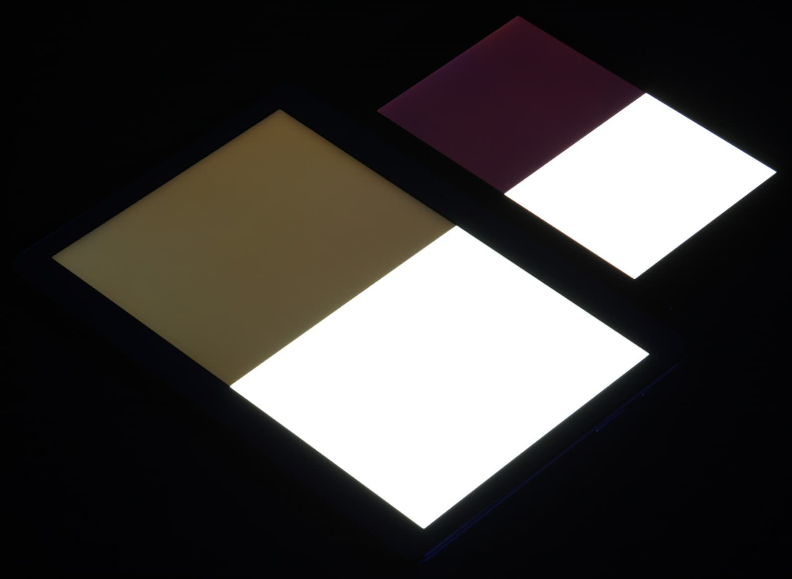 Видно, что цвета и яркостный баланс не сильно изменились у обоих планшетов, но у Huawei MediaPad M2 10.0 контраст уменьшился в большей степени из-за сильного высветления черного. Затем белое поле: