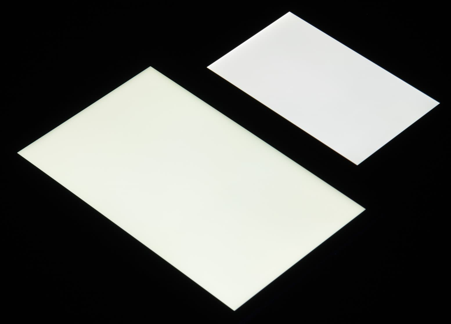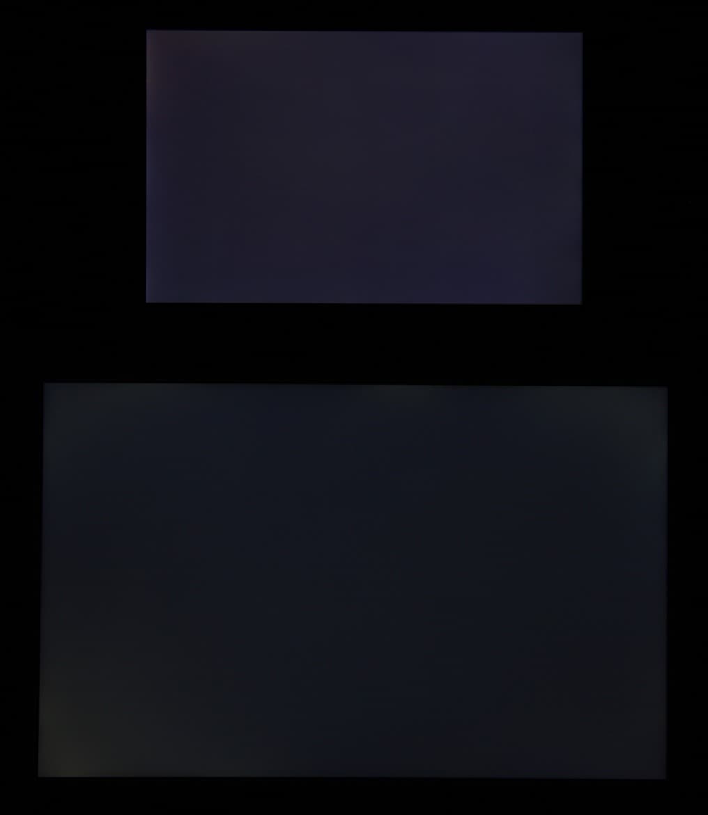 При перпендикулярном взгляде равномерность черного поля неидеальная, так местами ближе к краю яркость черного поля заметно увеличивается: