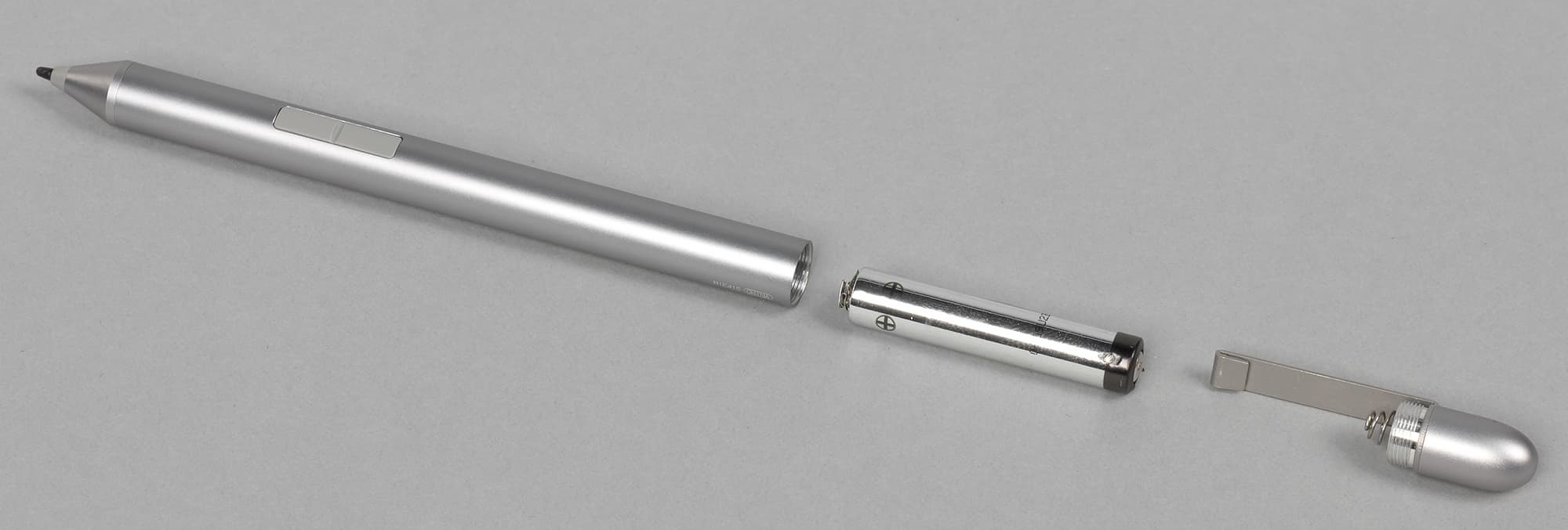 Стилус почти целиком выполнен из металла, он довольно компактный и тонкий. Крышечка откручивается, под ней — одна батарейка.