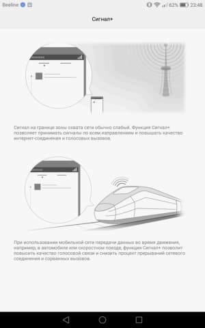 Что касается коммуникационной части, то здесь MediaPad М3 ничем не уступает современным смартфонам (за исключением уже упомянутого разговорного динамика). Аппарат стандартно работает в современных сетях 2G GSM и 3G WCDMA, а также имеет поддержку сетей четвертого поколения LTE, причем поддерживается максимальное количество диапазонов частот, в том числе и используемые отечественными операторами FDD LTE Band 3, 7 и 20. Используются знакомые функции Huawei для улучшения качества соединения: Сигнал+, Wi-Fi+, Роуминг+. На практике в московском регионе аппарат уверенно регистрировался и работал в сетях 4G, быстро осуществлял повторное соединение после разрыва, не терял связь в зонах неуверенного приема.