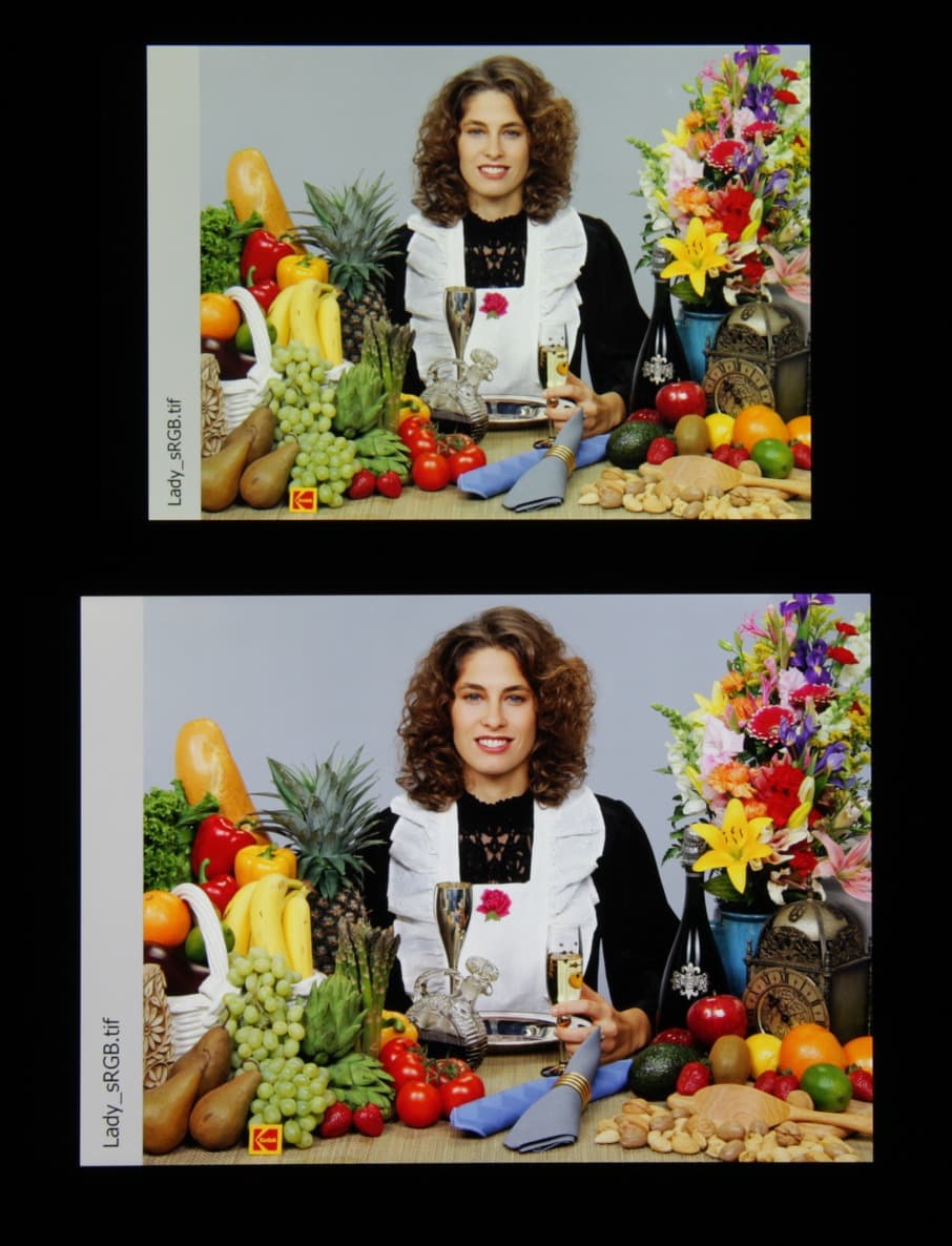 Насыщенность пришла в норму, да и цветовой баланс заметно улучшился. То есть когда в приоритетах качество изображения, а не яркость, стоит залезть в настройки экрана и выбрать указанную опцию. Впрочем, яркость при этом уменьшается всего на 3,6%, чем можно пренебречь в любом случае.