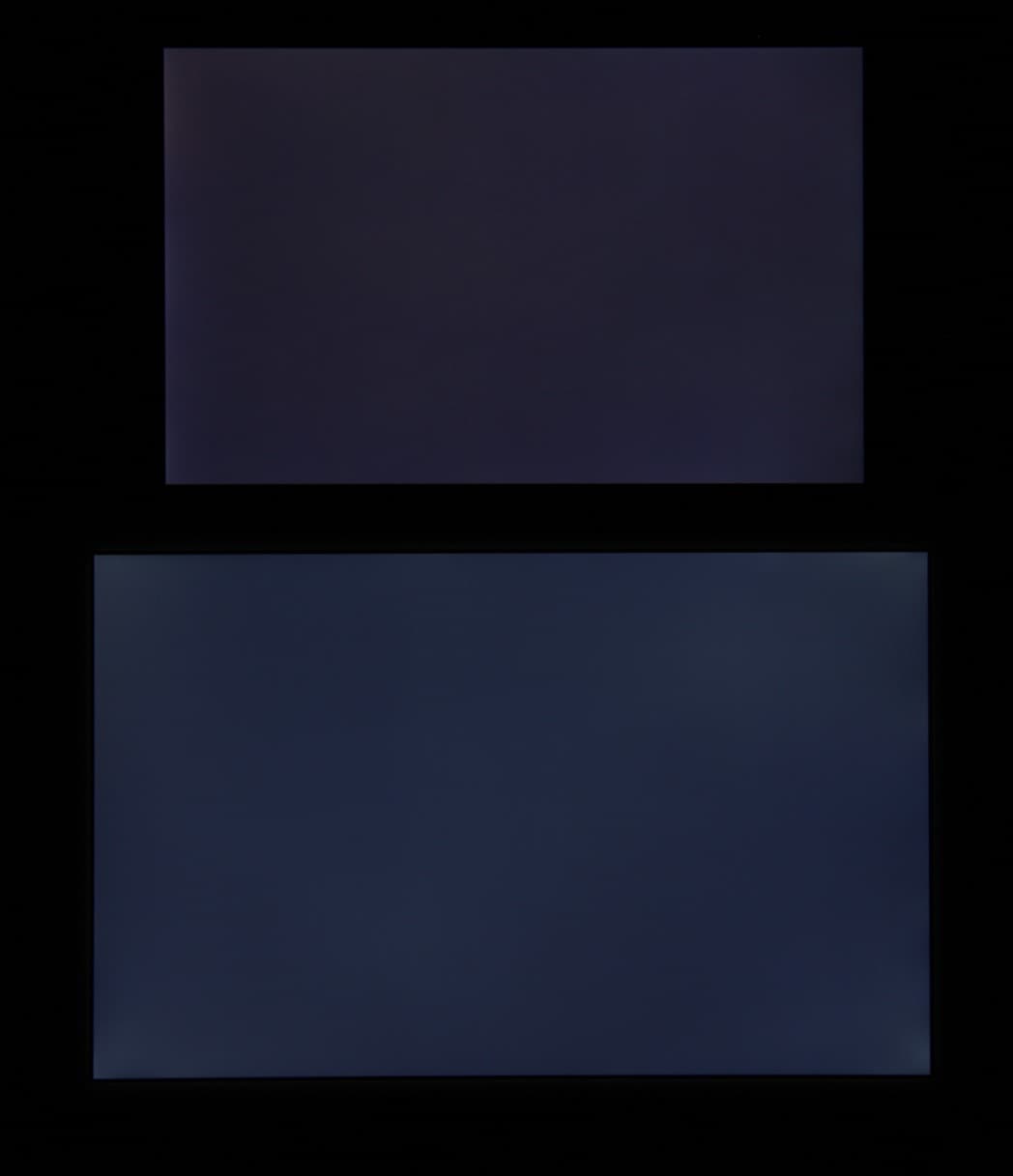 При перпендикулярном взгляде равномерность черного поля неидеальная, так ближе к углам яркость черного поля заметно увеличивается (тут яркость подсветки у Huawei MediaPad M3 выведена на максимум):