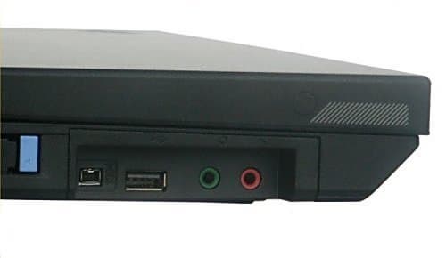 На левой панели находится выхлопная решетка системы вентиляции, далее идет разъем PC-CARD (1 разъем), прикрытый обычной для IBM подпружиненной крышкой, далее, в вырезе корпуса разъемы IEEE1394, USB 2.0, аудиоразъемы. Вот более крупная фотография этого места, чтобы вы могли оценить «полочку».
