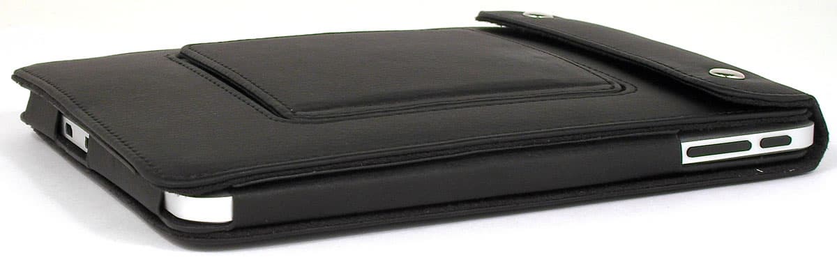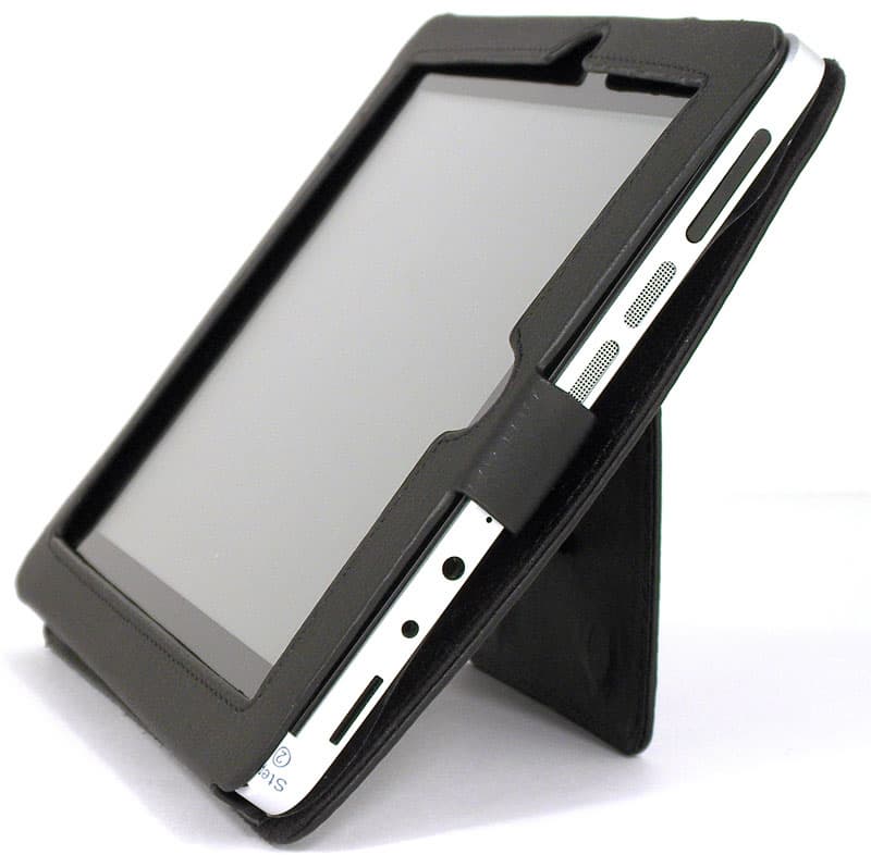 Откидывающаяся крышка, прикрывающая экран, фиксируется невидимыми магнитами. Таким образом, можно не опасаться, что она произвольно откроется под своим весом — для её открытия требуется приложить пусть малое, но усилие. Крышка эта прикреплена к чехлу двумя кнопками — при необходимости её можно легко отстегнуть. «Нашлёпка» с обратной стороны чехла, напоминающая кармашек, — это откидывающаяся подпружиненная ножка-подставка. Благодаря ей планшет, облачённый в чехол, можно разместить на ровной поверхности под углом, удобным для чтения или просмотра видео.