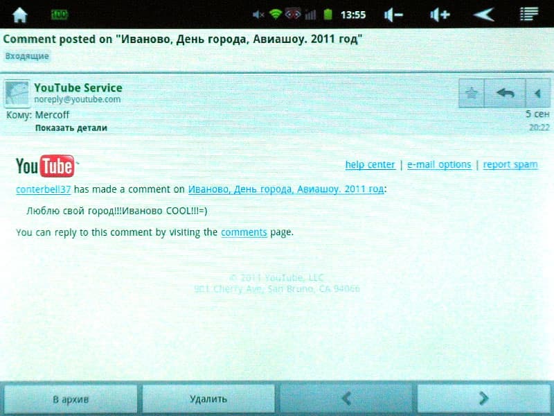 Встроенный браузер быстр в работе, сложное форматирование страниц отображает корректно, скрипты обрабатывает без ошибок. Flash-видео на веб-страницах воспроизводится без задержек, хотя поверх видео всё-таки отображается знакомое многим владельцам Android-устройств предупреждение «Это видео не адаптировано для мобильных устройств».