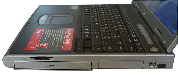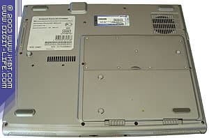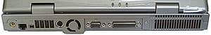Некоторые комментарии. Расположение разъемов не кажется мне особенно удачным. Разъем PS/2 расположен вроде бы удобно, но окно инфракрасного порта находится слишком близко от него. К тому же телефонный кабель подключается к противоположному "борту" получается, что провода подходят к корпусу со всех сторон. Разъем IEEE1394 мало того, что расположен на задней поверхности, он еще и спрятан за сетевым шнуром и кабелем источника питания (в "стационарном" варианте эти кабели практически всегда подсоединены). Так что единственный разумный вариант его использования оставлять постоянно воткнутый "хвост", что в принципе не очень хорошо. Про порты USB я говорил уже столько, что повторяться не буду. Но пользоваться USB-дисководом при таком подключении неудобно.