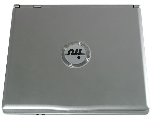 Материал корпуса — пластмасса, покрашенная серебристой краской. Честно говоря, выглядит не очень эффектно. К тому же краска стирается, что заметно по побывавшему на тестировании образцу. Как мне кажется, ноутбук такого класса должен быть не просто рабочим инструментом, но и подчеркивать социальный статус владельца. Novia 3012 на это, к сожалению, неспособна. Верхняя крышка оригинальной формы позволяет видеть индикаторы, расположенные на корпусе.
