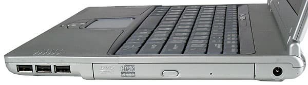 Справа все три порта USB, устройство для работы с оптическими дисками и разъем для подключения источника питания. Здесь все размещено достаточно логично.