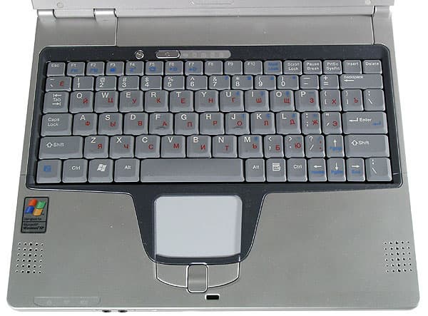 Под крышкой все та же пластмасса. Клавиатура аналогична используемой в моделях от ASUS с 12-дюймовой матрицей, часть клавиш с правой стороны заужены, кроме того, заужены и клавиши управления курсором. Как я уже писал, такая раскладка для русского алфавита мне не кажется оптимальной. Мне она показалась чуть разболтанной, но это, видимо, огрехи инженерного образца.